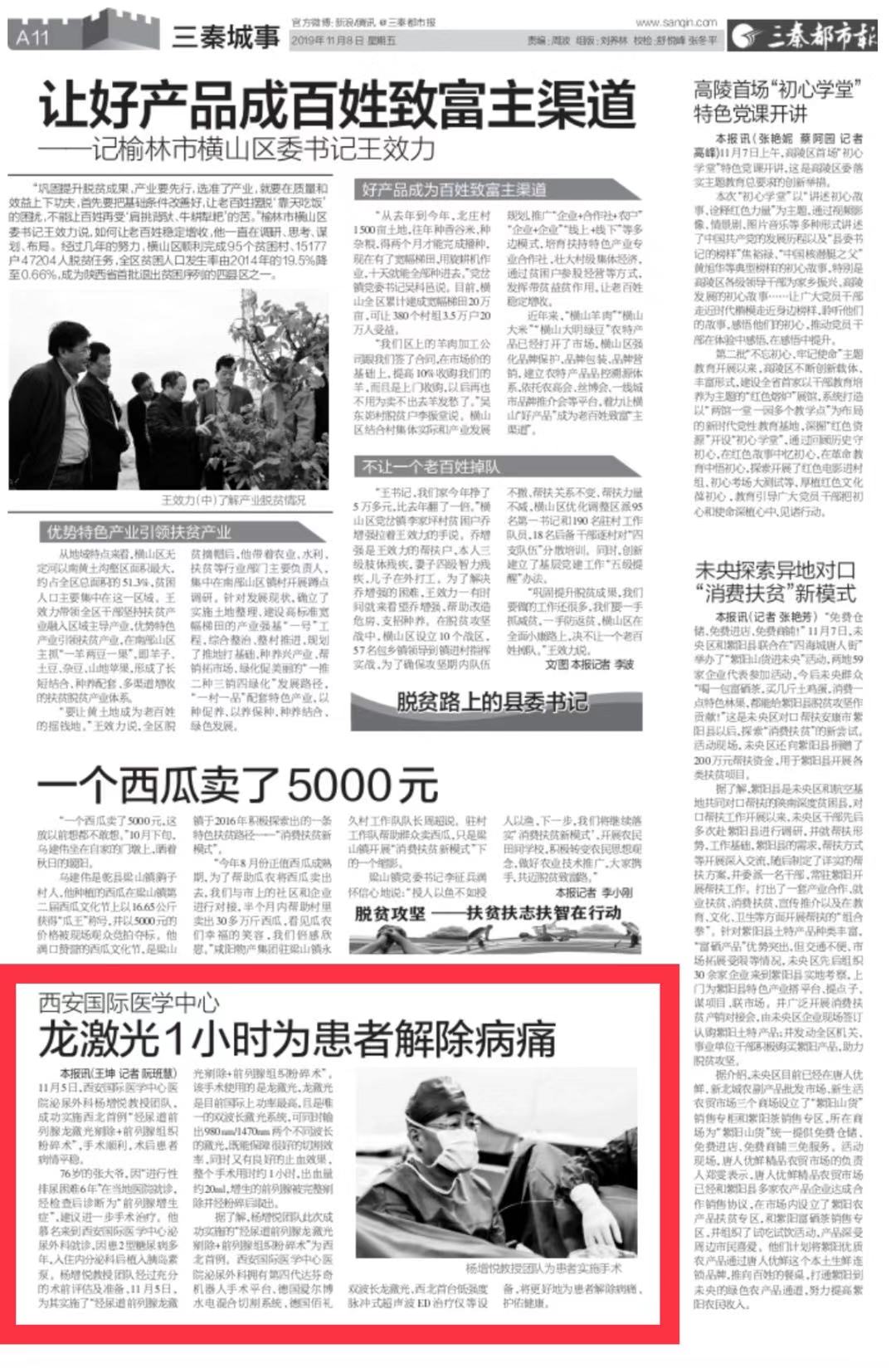 三秦都市報報道—龍激光1小時為患者解除病痛