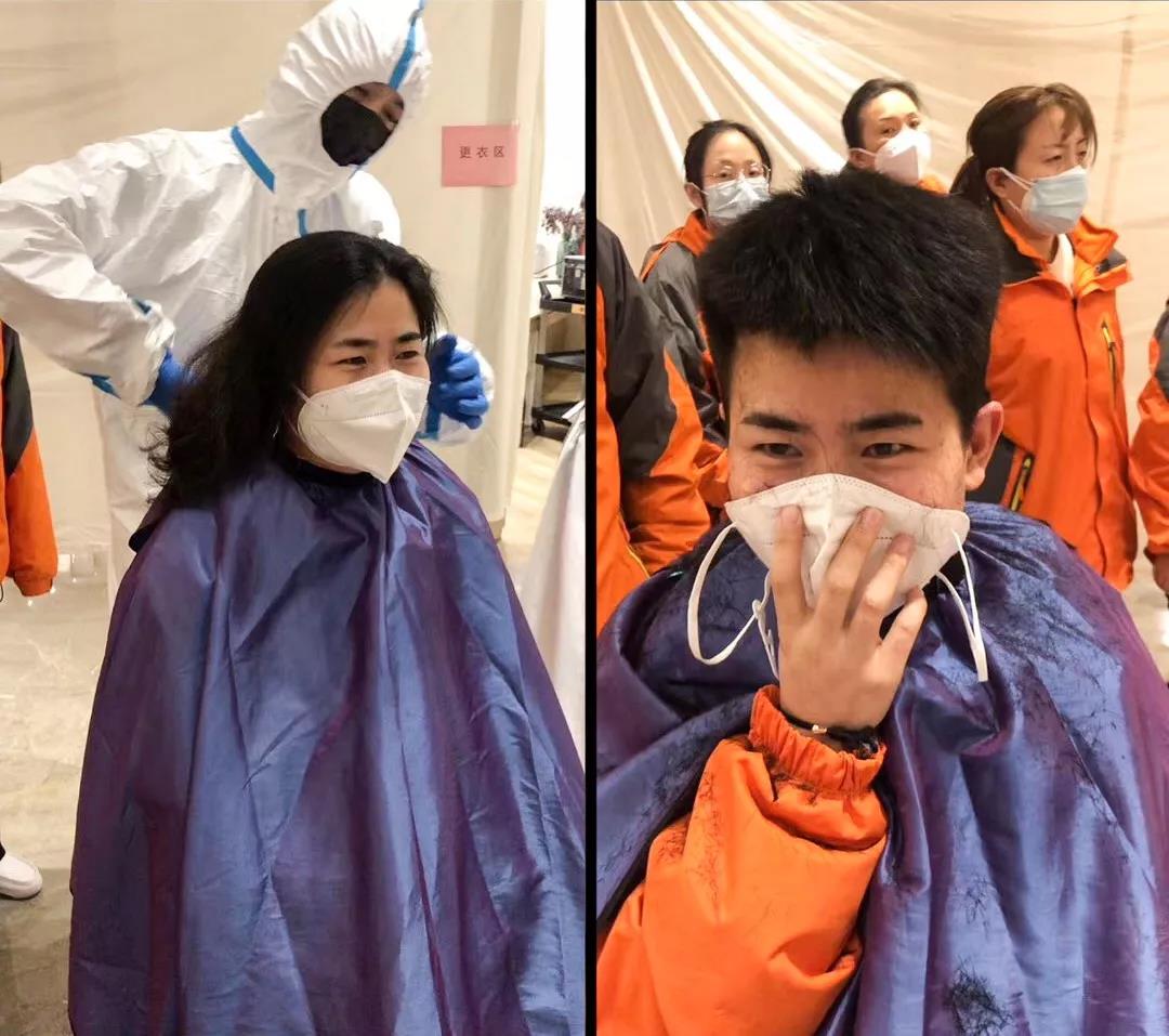武漢市委秘書長和江岸區(qū)委書記、區(qū)長等領(lǐng)導(dǎo)同志,看到姑娘們長長的秀發(fā)一片片落下,感動地說,疫情過去一定為你們請功!你們將成為武漢的榮譽市民!
