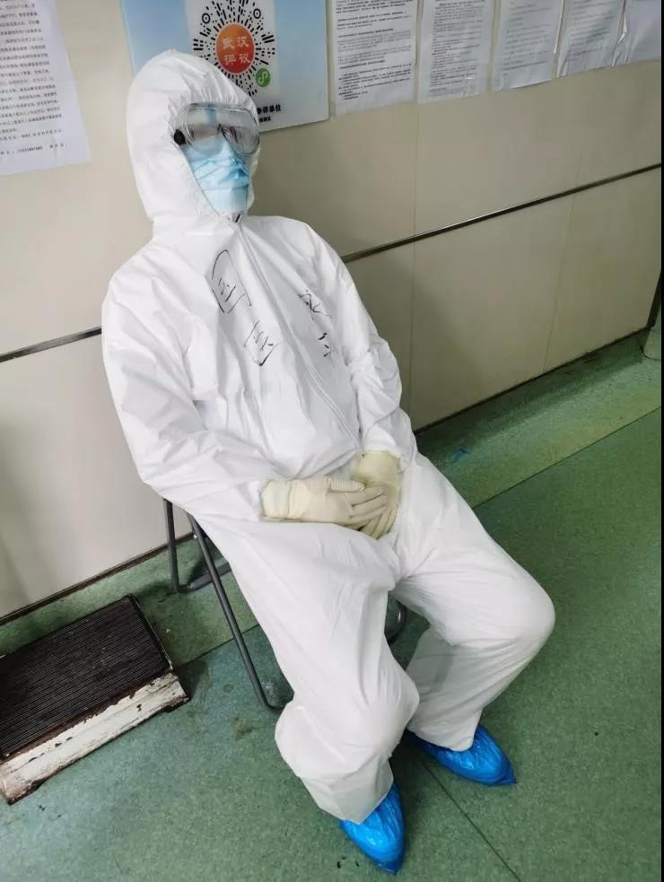 正月十五的夜,月兒很圓。實在太累了,得“秒”睡會兒。西安國際醫(yī)學中心醫(yī)院赴武漢醫(yī)療隊隊員正奮戰(zhàn)在武漢第八醫(yī)院的一間間病房里。隊員劉永平醫(yī)生已連續(xù)奮戰(zhàn)了三個多小時了,實在太累了,坐在凳子上都睡著了……這一幕正好被旁邊的同事拍到了。進入武漢第八醫(yī)院(卓爾長江應急醫(yī)院)工作,醫(yī)療隊劉永平醫(yī)生每天穿梭在病房之間,和護理人員一起查房,詢問患者情況,制定診療方案,這一切場景在醫(yī)院里好像都是稀松平常。唯一不同的是,穿戴全套防護裝備的他,工作一兩個小時就需要停下來,喘口氣,然后再重新投入工作。