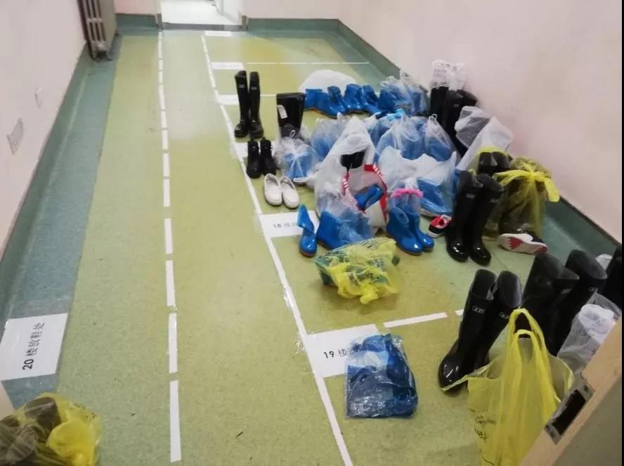 各項(xiàng)方案制度流程制定后,抽調(diào)護(hù)理部毛金蓮護(hù)士長具體負(fù)責(zé)督導(dǎo)小組。她帶領(lǐng)隊(duì)員對(duì)清潔區(qū)、緩沖區(qū)、污染區(qū)及人員安全通道進(jìn)行消毒、噴灑,保證隊(duì)員更衣環(huán)境的安全,設(shè)立戰(zhàn)地“國際醫(yī)學(xué)標(biāo)準(zhǔn)”。