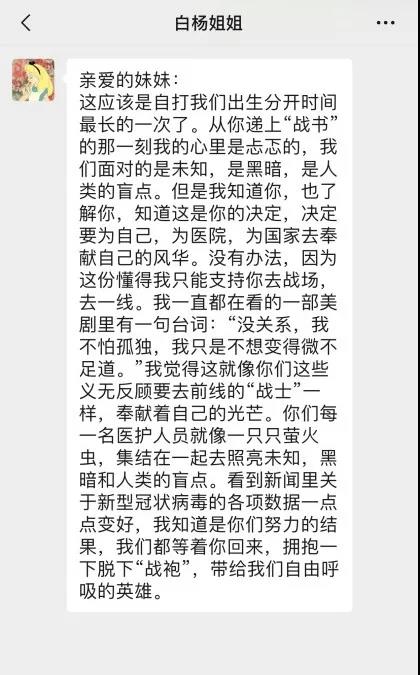 陽(yáng)光總在風(fēng)雨后,我們大家都堅(jiān)定信心,有祖國(guó)做我們的強(qiáng)大后盾,有全國(guó)醫(yī)護(hù)人員的齊心協(xié)力、同舟共濟(jì),相信我們一定能打贏這場(chǎng)戰(zhàn)役,春暖花開(kāi)之日我們?cè)僖?jiàn)!