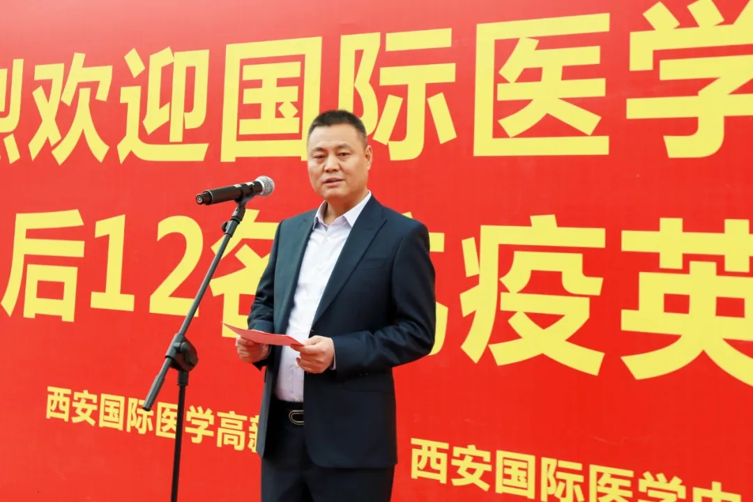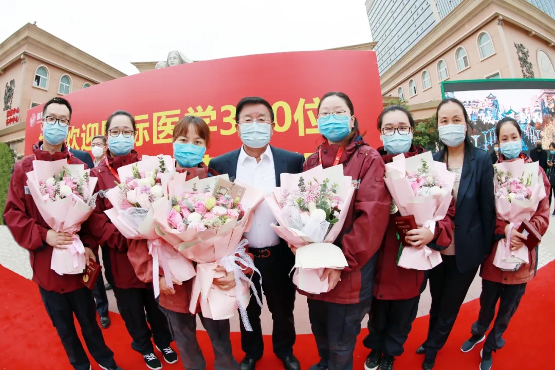 奏唱國(guó)歌后,劉瑞軒總裁代表集團(tuán)致歡迎辭表示,面對(duì)疫情,你們置個(gè)人生死于不顧,迎難而上,舍小家為大家馳援湖北,在國(guó)際醫(yī)學(xué)330名抗疫英雄中,你們出征最早,卻回家最晚!你們是我們國(guó)際醫(yī)學(xué)人的驕傲,是三秦父老的驕傲,是中華民族的脊梁!