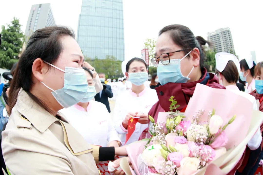 鮮花伴著掌聲,喜悅伴著希冀。在簡(jiǎn)短而隆重的歡迎儀式后,6名抗疫英雄終于與同事家人團(tuán)聚。瞬時(shí),所有的思念和牽掛都化為熱烈的擁抱和激動(dòng)的淚水,現(xiàn)場(chǎng)的一幕幕畫面讓人為之動(dòng)容。