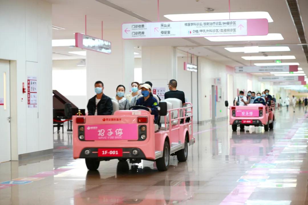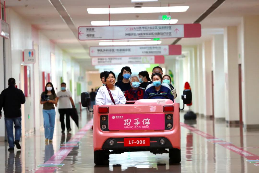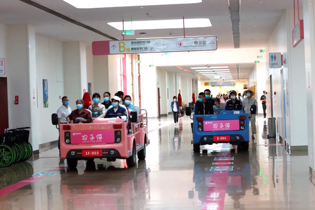 自2019年9月25日開診以來,醫(yī)院在門診一二三層都配備了“招手?!彪娖寇?,免費接送就醫(yī)民眾和醫(yī)護人員往返于各??漆t(yī)院和科室,隨招隨停。