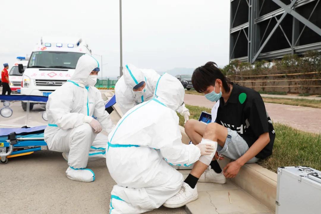隨后院長(zhǎng)尹強(qiáng)通過對(duì)講機(jī)發(fā)出演練開始指令。在觀摩組的注視下,一支由22輛急救車及20組醫(yī)、護(hù)、工人員組成的救援隊(duì)立刻趕赴模擬的重大交通事故現(xiàn)場(chǎng)進(jìn)行應(yīng)急救援。