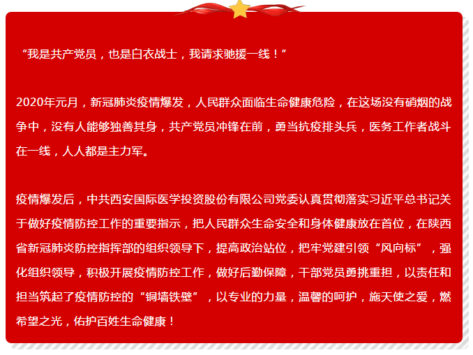 疫情發(fā)生后,西安國際醫(yī)學(xué)很多黨員主動請纓,踴躍報名參加馳援武漢醫(yī)療隊。
