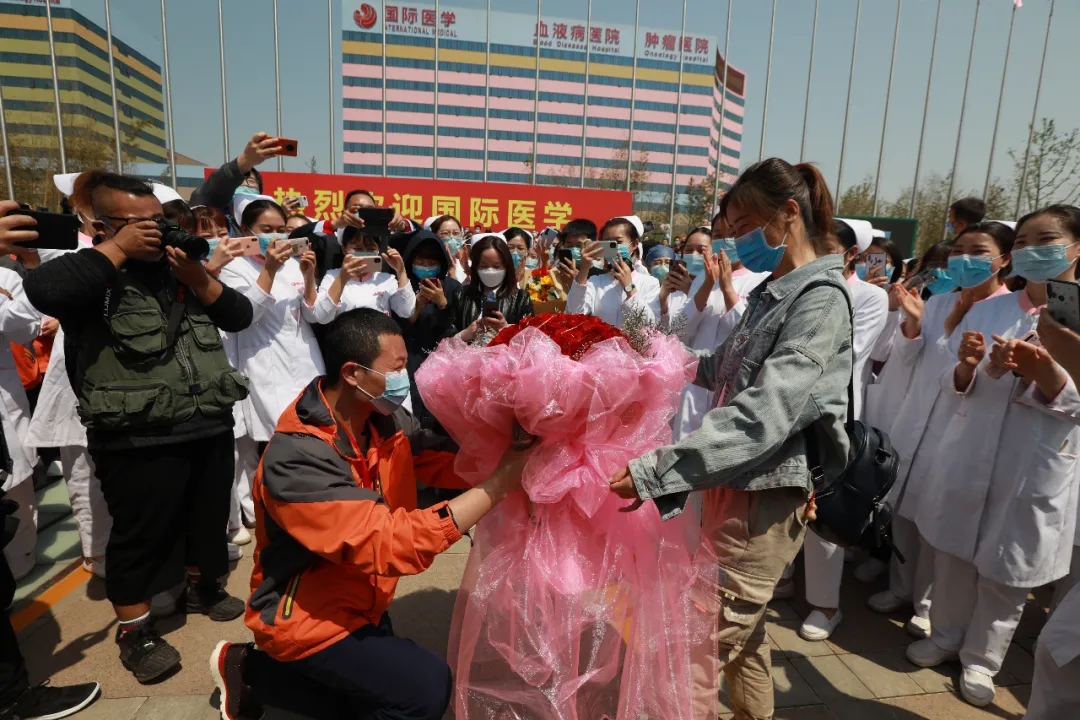“感謝有你!今天是我回家的日子,感恩相遇相知相戀。我想結(jié)束我們的愛(ài)情長(zhǎng)跑。嫁給我,你愿意嗎?”在萬(wàn)人廣場(chǎng)上,消化介入診療中心護(hù)師趙寶寶向相戀4年的女友求婚。