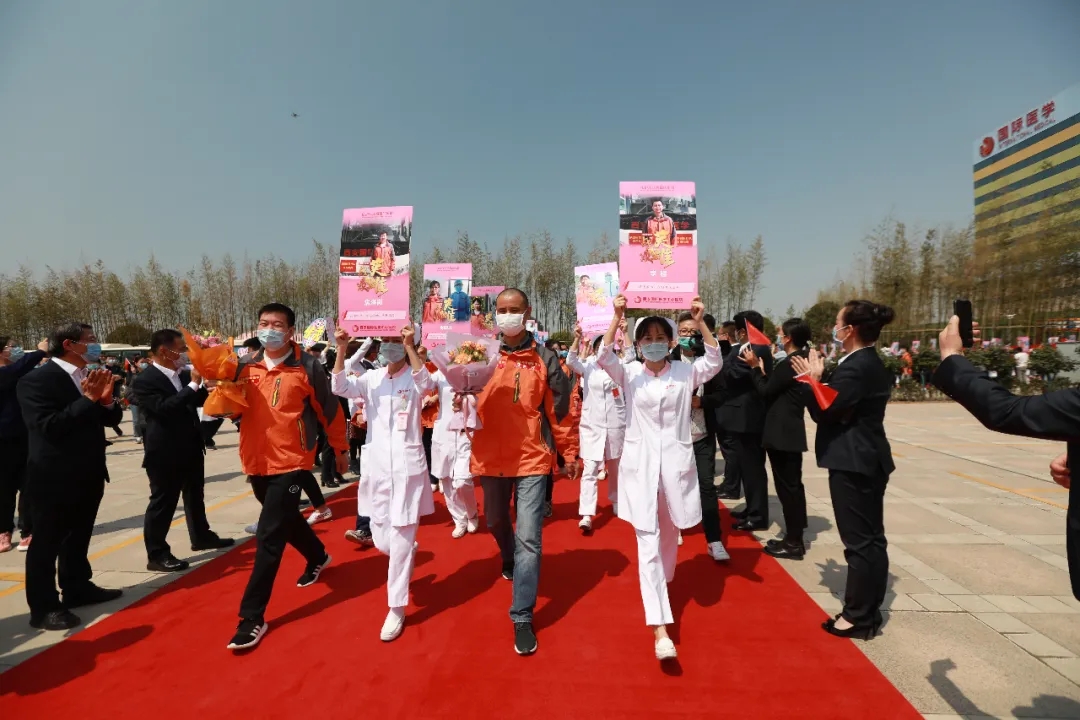 鮮花、掌聲、歡迎曲。西安國(guó)際醫(yī)學(xué)中心醫(yī)院萬(wàn)人廣場(chǎng)的百米紅毯格外引人注目。親人和工作人員夾道歡迎抗疫英雄。國(guó)際醫(yī)學(xué)實(shí)際控制人劉建申、董事長(zhǎng)史今、副董事長(zhǎng)曹鶴玲、副董事長(zhǎng)王愛(ài)萍、監(jiān)事會(huì)主席曹建安、副總裁孫文國(guó)、副總裁丁震、副總裁王杲、副總裁孫義寬、財(cái)務(wù)總監(jiān)王亞星等集團(tuán)領(lǐng)導(dǎo),以及西安國(guó)際醫(yī)學(xué)中心醫(yī)院、西安國(guó)際醫(yī)學(xué)高新醫(yī)院、西安國(guó)際醫(yī)學(xué)商洛醫(yī)院的領(lǐng)導(dǎo)出席。歡迎儀式由總裁劉瑞軒主持。