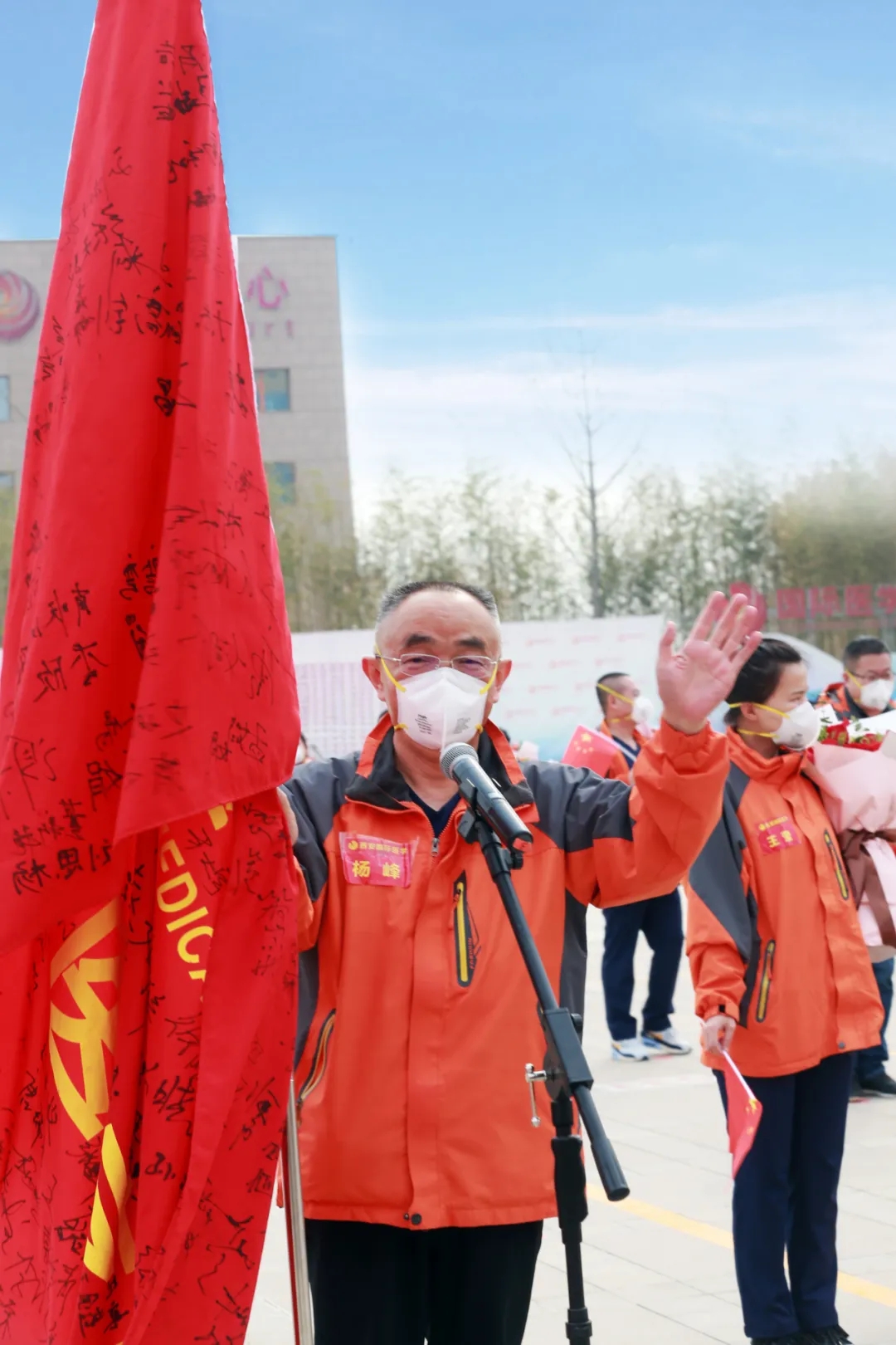 “歡迎回家!”在西安國際醫(yī)學(xué)中心的萬人廣場,陜西省副省長趙剛,國務(wù)院應(yīng)對新冠肺炎疫情聯(lián)防聯(lián)控機制綜合組第十二工作指導(dǎo)組組長、國家衛(wèi)健委人才中心主任、黨委書記張俊華,省衛(wèi)健委書記劉勤社,省衛(wèi)健委主任劉寶琴,省衛(wèi)健委副主任、省保健局局長趙嵐,省衛(wèi)健委副主任劉嶺,西安市委常委、高新技術(shù)開發(fā)區(qū)黨工委書記、西安民用航天產(chǎn)業(yè)基地黨工委書記鐘洪江,國際醫(yī)學(xué)董事長史今、總裁劉瑞軒、副總裁孫文國、西安國際醫(yī)學(xué)中心醫(yī)院院長尹強等出席歡迎儀式,向醫(yī)療隊表示親切的問候,并向他們無畏生死、奮戰(zhàn)一線的精神致敬!