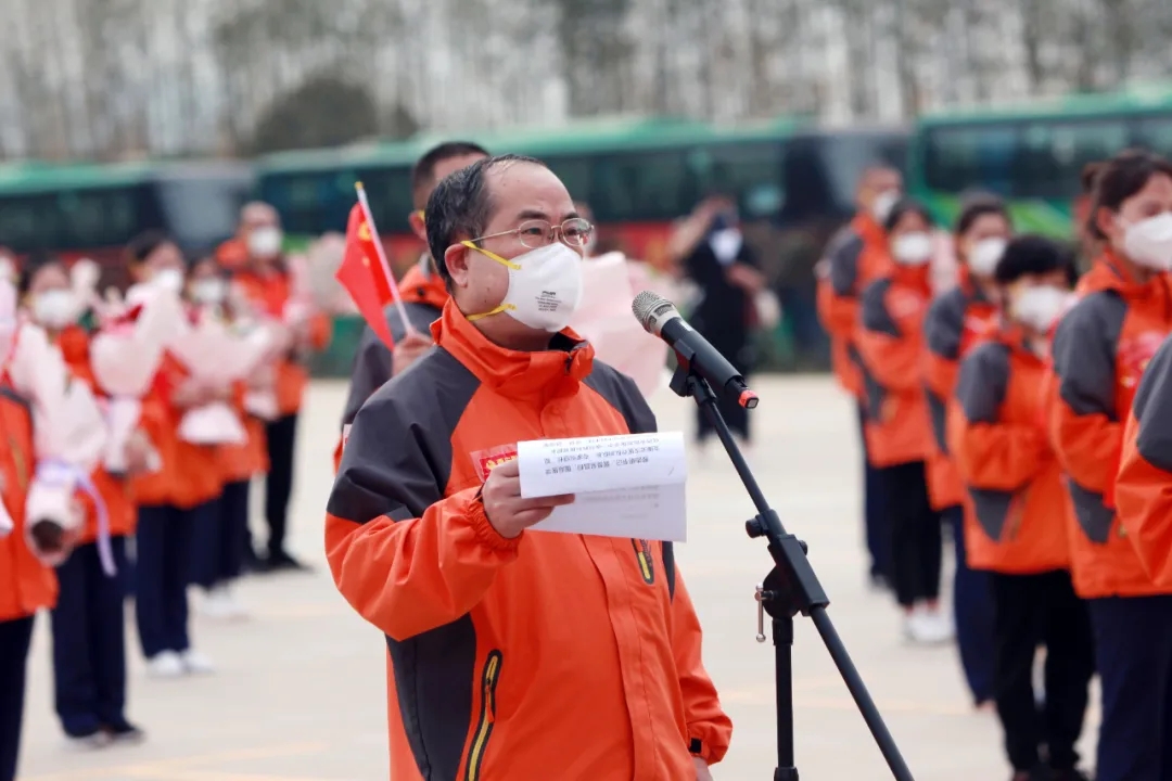 張俊華書記向醫(yī)療隊的凱旋歸來表示熱烈歡迎,并對戰(zhàn)疫勇士們?yōu)榱藝?、湖北,舍小家為大家,圓滿完成臨床一線的救治任務(wù)表示感謝。