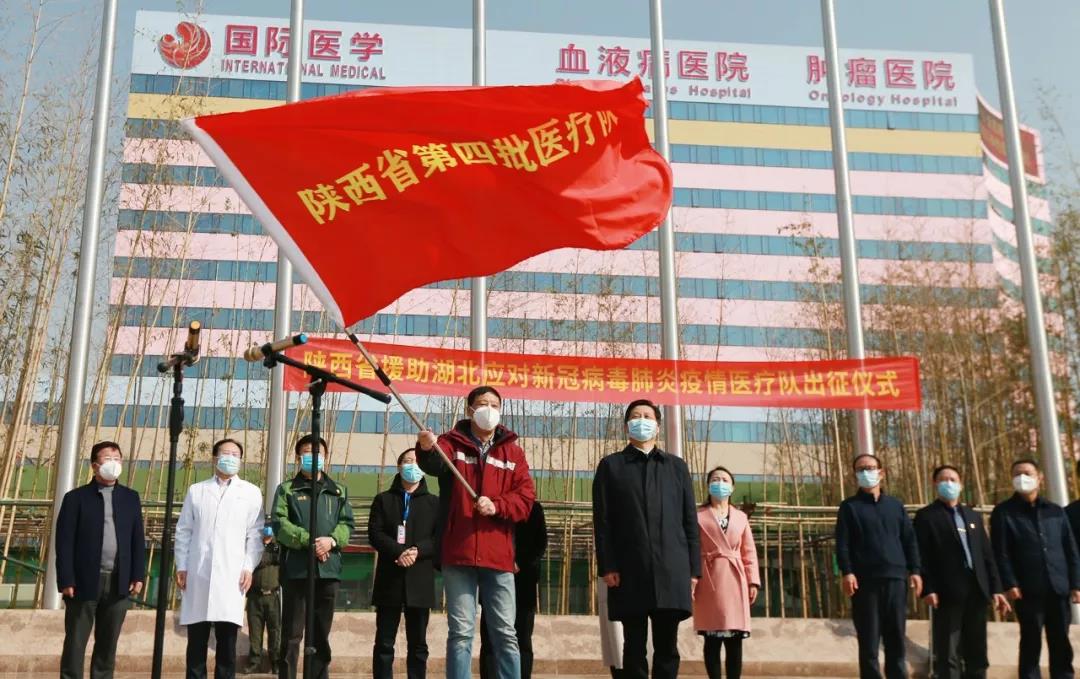 上午11點,在西安國際醫(yī)學(xué)中心醫(yī)院萬人廣場上舉行了簡單而莊重的出征儀式,陜西省衛(wèi)健委黨組書記劉勤社、西安國際醫(yī)學(xué)投資股份有限公司實際控制人劉建申、國際醫(yī)學(xué)董事長史今、總裁劉瑞軒等領(lǐng)導(dǎo)出席并講話。
