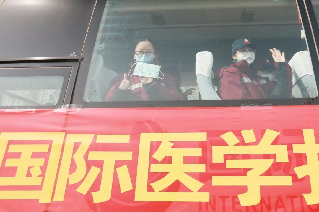 “每一次集結(jié)號吹響,你們都奮勇向前,在疫情面前無私奉獻、敢于擔(dān)當(dāng),正是因為我們有大愛。國際醫(yī)學(xué)人時時刻刻都不忘初心、牢記使命,用行動踐行我們的誓言:施天使之愛,佑百姓健康!”董事長史今在儀式上向出征隊員致敬并叮囑隊員們一定要保護好自己,“零感染、高質(zhì)量、共克時艱,出色完成患者的救治任務(wù)。你們帶去的是陜西人民對武漢人民的深情厚誼,要讓黨旗在一線高高飄揚!和武漢人民一起共度難關(guān)!”