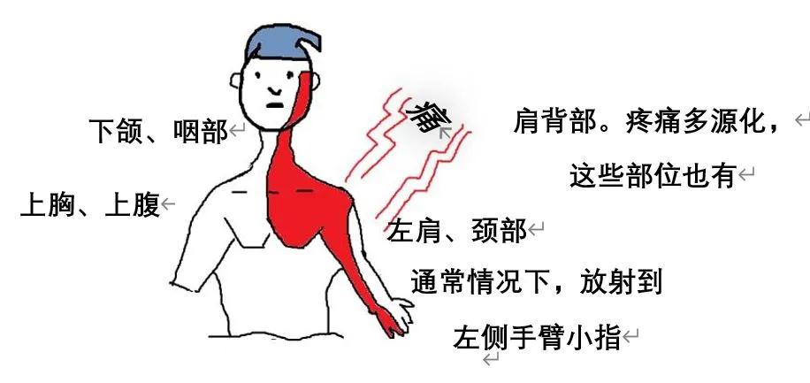 部分患者可伴有左肩、左側(cè)前臂內(nèi)側(cè)、背部、上腹部、咽喉、牙齒的放射痛。