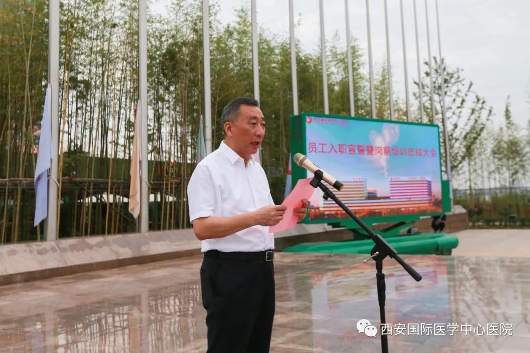 8月3日,西安國際醫(yī)學中心醫(yī)院舉行新員工入職宣誓暨崗前培訓總結儀式。尹強院長、王志峰總經理、楊峰副院長、李武平副院長、張斌副院長、財務總監(jiān)王亞星等領導出席,232名新入職員工參加。入職儀式由楊峰副院長主持。