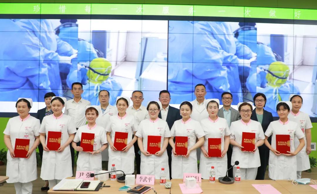 醫(yī)院領導為9名護理人員頒發(fā)了榮譽證書,并勉勵大家在今后的工作中,以嚴謹的工作態(tài)度、精湛的護理技術以及飽滿的精神和昂揚的斗志,為廣大患者的生命健康保駕護航。