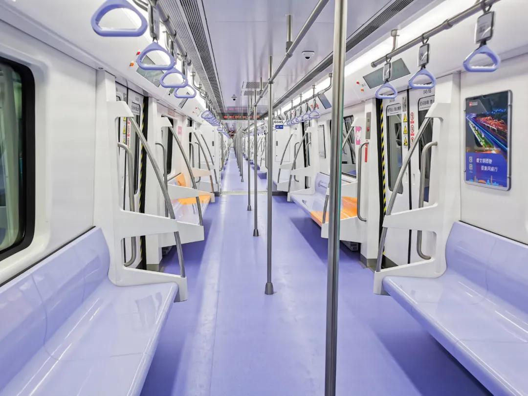 28日上午,小編乘坐開往西安國際醫(yī)學(xué)中心方向的6號線地鐵。該車車身腰線為一抹清新“星空藍”,車內(nèi)裝飾為點點淡雅“香芋紫”;車門上方的LCD顯示屏,既有整體線路、運行狀態(tài)等基本信息,也有列車抵達下一站的預(yù)計時間,更有站臺層扶梯、直梯與洗手間的位置等便民信息;橙黃色的愛心座椅自帶加熱功能,科技感十足,有顏值,更便捷!