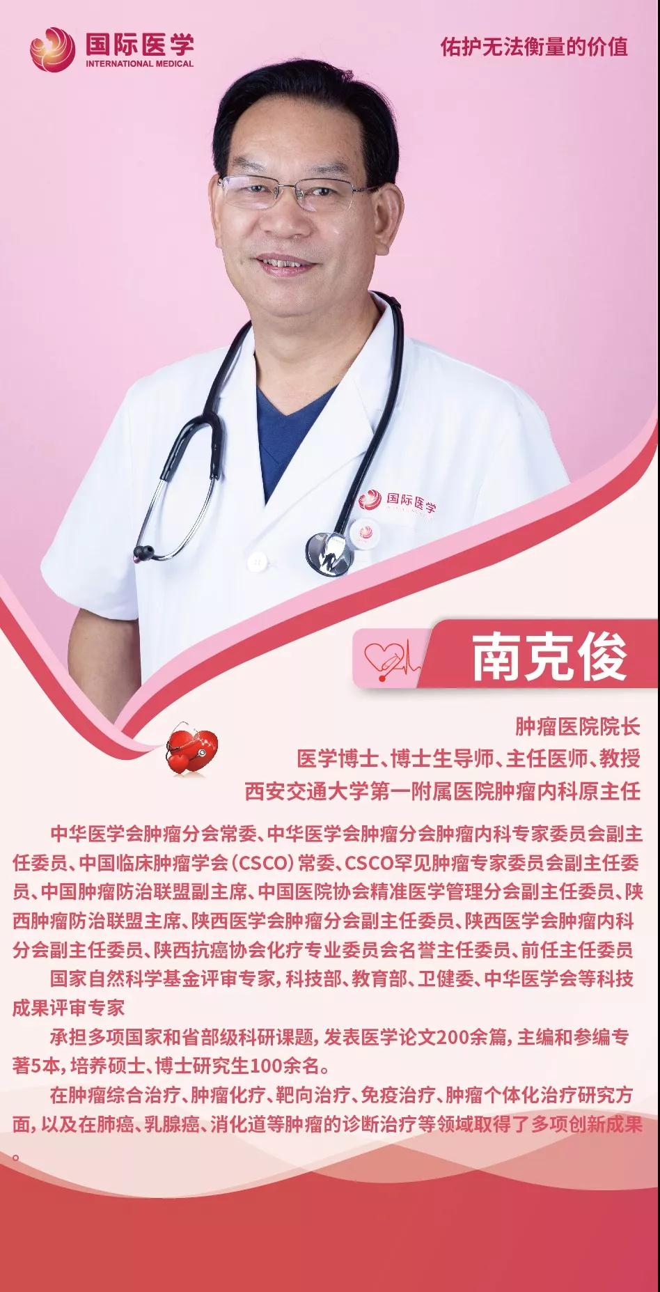 南克俊,腫瘤醫(yī)院院長,醫(yī)學(xué)博士、博士生導(dǎo)師、主任醫(yī)師、二級教授,西安交通大學(xué)第一附屬醫(yī)院腫瘤內(nèi)科原主任,中華醫(yī)學(xué)會腫瘤分會常委,中華醫(yī)學(xué)會腫瘤分會腫瘤內(nèi)科專家委員會副主任委員,中國臨床腫瘤學(xué)會(CSCO)常委,CSCO罕見腫瘤專家委員會副主任委員,中國腫瘤防治聯(lián)盟副主席,中國醫(yī)院協(xié)會精準(zhǔn)醫(yī)學(xué)管理分會副主任委員,陜西腫瘤防治聯(lián)盟主席,陜西醫(yī)學(xué)會腫瘤分會副主任委員;承擔(dān)多項(xiàng)國家和省部級科研課題,發(fā)表醫(yī)學(xué)論文200余篇,主編和參編專著5本,培養(yǎng)碩士、博士研究生100余名;在腫瘤綜合治療、腫瘤化療、靶向治療、免疫治療、腫瘤個(gè)體化治療研究方面,以及在肺癌、乳腺癌、消化道等腫瘤的診斷治療等領(lǐng)域取得了多項(xiàng)創(chuàng)新成果。