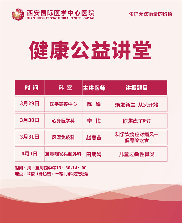西安國際醫(yī)學中心醫(yī)院—青年醫(yī)師健康公益講堂預告