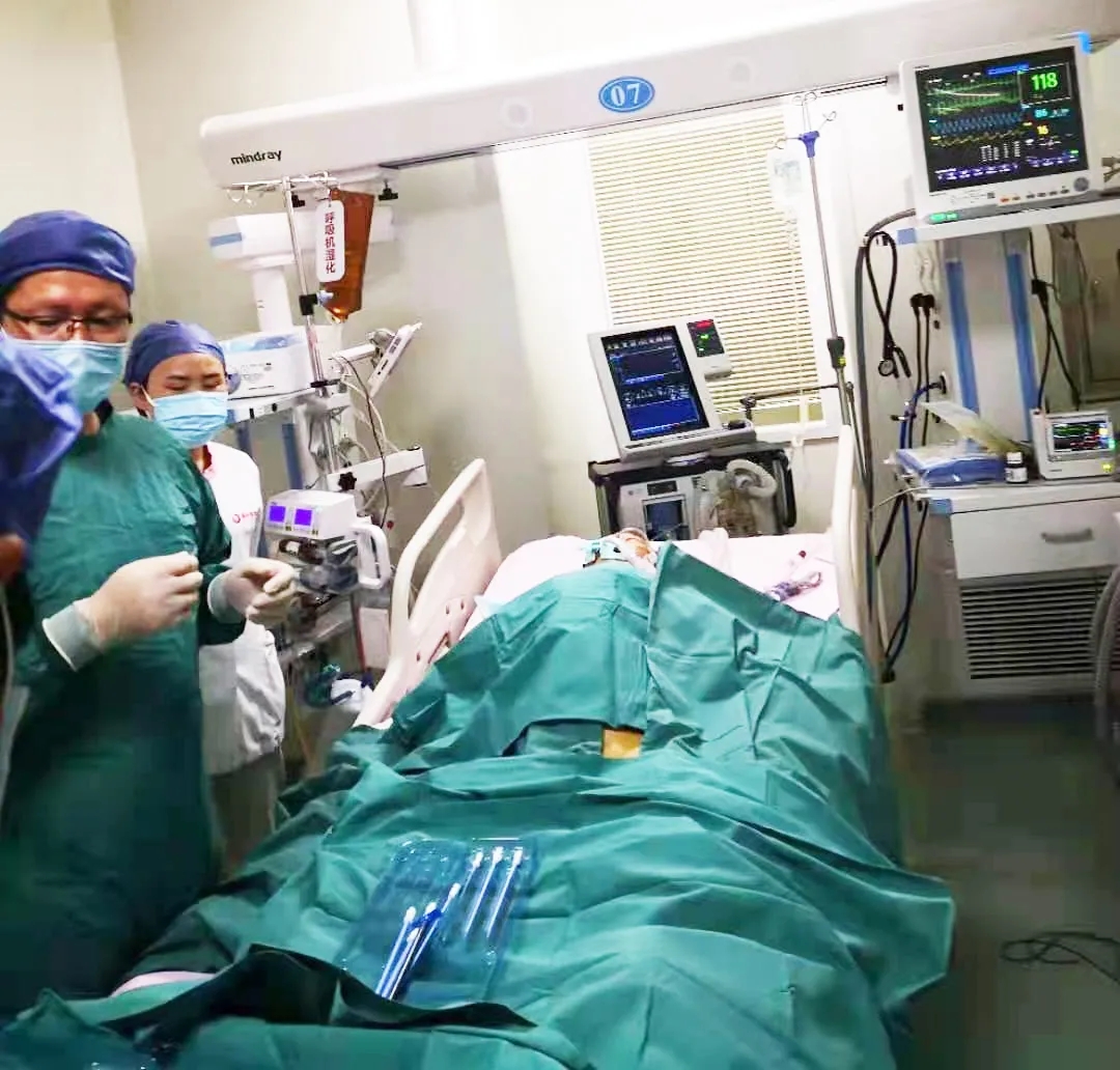 時(shí)間就是生命,治療設(shè)備第一時(shí)間到位后,胸科醫(yī)院吳昌歸院長、呼吸內(nèi)科重癥監(jiān)護(hù)室陳麗展主任、心外科程亮主任、程維平醫(yī)生等人立刻開始緊張的搶救工作。醫(yī)護(hù)人員一邊進(jìn)行動靜脈置管并連接VV-ECMO的管路,一邊進(jìn)行抗感染、輸血、維持生命體征,吸痰等營養(yǎng)支持治療。直到入院次日下午3點(diǎn)左右,患者病情趨于穩(wěn)定,搶救才告一段落。在醫(yī)護(hù)人員的精心治療下,患者病情逐漸好轉(zhuǎn),13天后成功脫離體外膜肺、停用VV-ECMO,16天后拔除氣管插管,能夠清楚的和人溝通交流,恢復(fù)情況讓醫(yī)護(hù)興奮,更讓家屬激動不已。