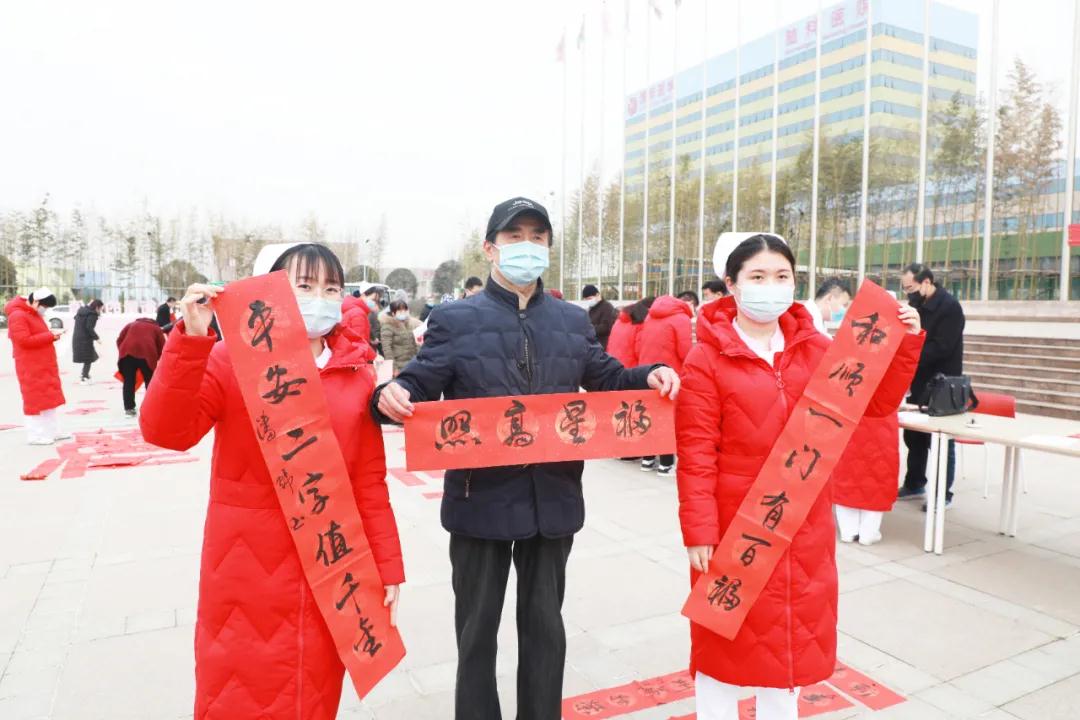 全天活動(dòng)中,書法名家為現(xiàn)場(chǎng)群眾書寫了600余副對(duì)聯(lián),得到群眾的一致認(rèn)可和熱烈歡迎,大家接過寫滿祝福和美好祝愿的對(duì)聯(lián)時(shí),喜悅之情溢于言表?!翱吹綄?duì)聯(lián),就覺得春節(jié)的腳步越來越近了,謝謝醫(yī)院這么暖心?!币晃皇峙鯇?duì)聯(lián)的患者家屬高興地說。