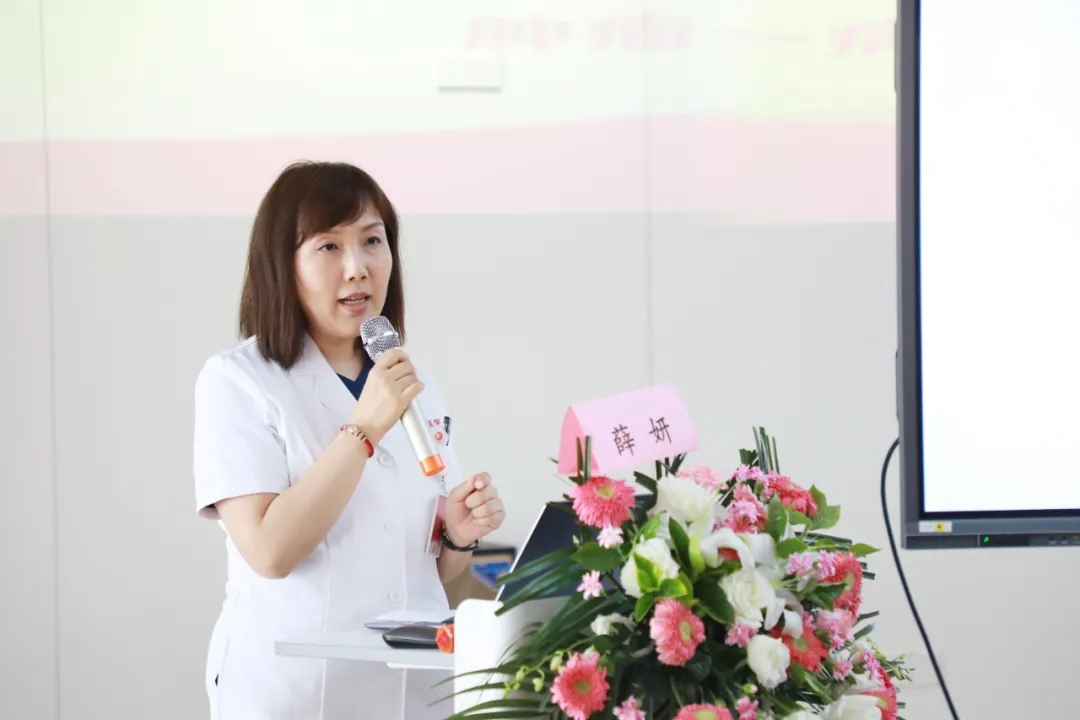 尹強(qiáng)院長(zhǎng)致辭,對(duì)前來(lái)參加活動(dòng)的患者和志愿者們表示歡迎,并詳細(xì)介紹了醫(yī)院的整體布局、人員架構(gòu)、??铺厣驮\療優(yōu)勢(shì)。尹院長(zhǎng)對(duì)薛妍教授及腫瘤一病區(qū)的工作給予了高度肯定,認(rèn)為本次活動(dòng)對(duì)于促進(jìn)醫(yī)患交流、宣傳腫瘤防治知識(shí)具有積極作用,也衷心祝愿患者朋友們?cè)缛湛祻?fù)。