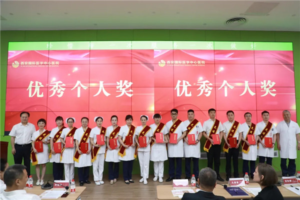 國際醫(yī)學(xué)集團領(lǐng)導(dǎo)、西安國際醫(yī)學(xué)中心醫(yī)院領(lǐng)導(dǎo)分別為特別貢獻獎、優(yōu)秀部門獎、優(yōu)秀科室獎、優(yōu)秀個人獎的獲獎集體及個人頒獎。