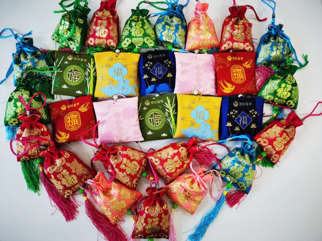 西安國際醫(yī)學(xué)中心醫(yī)院中藥房為您準(zhǔn)備了端午香囊,內(nèi)含蒼術(shù)、白芷、冰片、藿香和艾葉等多種香藥,有辟穢、燥濕、醒神的功效。這款端午香囊富涵植物藥香,甘涼舒適,濃郁不膩??梢耘宕饔谏砩?,或者懸掛車內(nèi)、房間、背包等處使用。