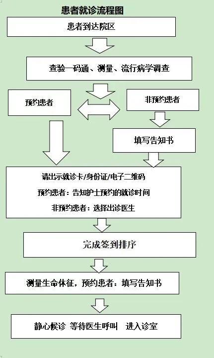 二、我院實行分時段預(yù)約就診。請您通過醫(yī)院微信公眾號、患者服務(wù)平臺等渠道實名預(yù)約就診,就診當(dāng)日按照預(yù)約時間提前半30分鐘到分診臺簽到候診。常態(tài)化疫情防控期間,建議你通過提前預(yù)約就診,以降低感染風(fēng)險。