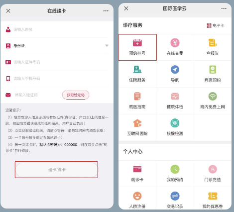 3、輸入個人信息完成就診卡綁定。綁卡后,點擊【預(yù)約掛號】