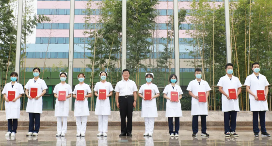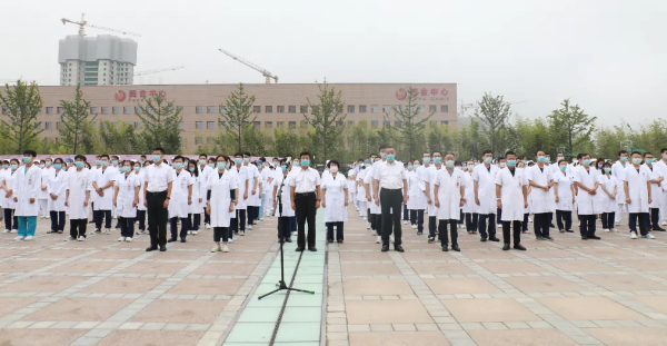 最后,劉延彤院長助理帶領(lǐng)全體新入職員工舉起右手,莊嚴宣誓,鏗鏘有力的誓言在萬人廣場久久回蕩。