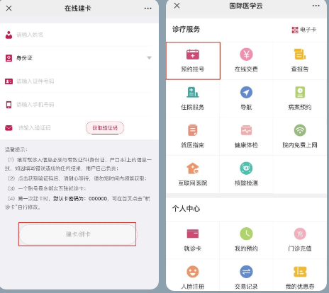 3、輸入個人信息完成就診卡綁定。綁卡后,點擊【預約掛號】