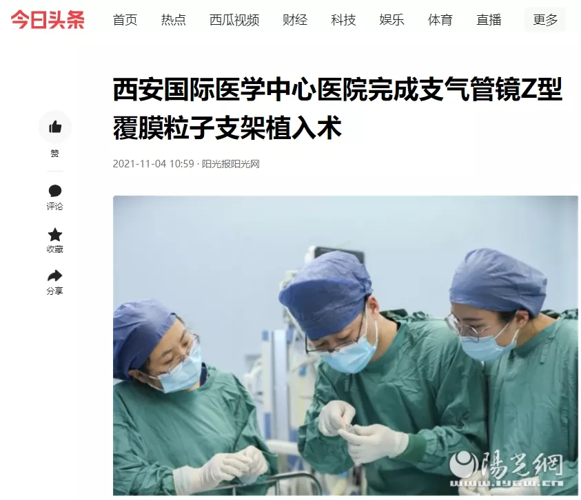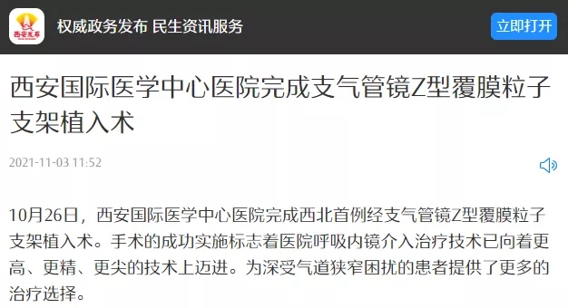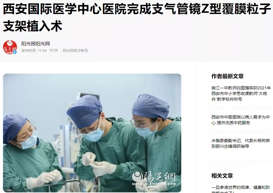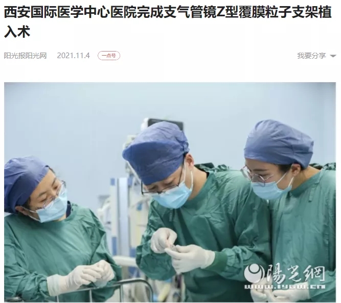 [老年健康?醫(yī)視界]西安國際醫(yī)學(xué)中心醫(yī)院完成經(jīng)支氣管鏡Z型覆膜粒子支架植入術(shù)