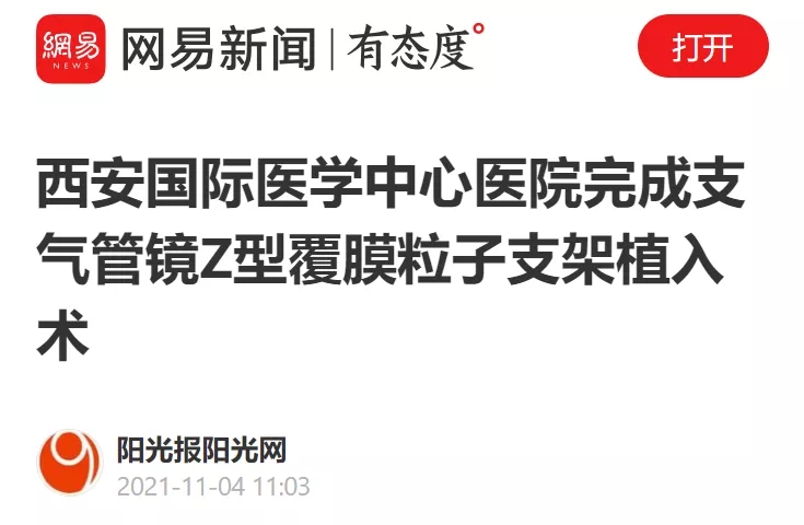 西安國際醫(yī)學(xué)中心醫(yī)院完成支氣管鏡Z型覆膜粒子支架植入術(shù)
