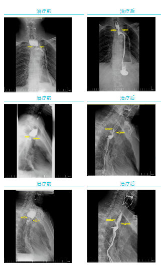 經(jīng)過一個周期的放療,李先生明顯感受好多了,可以正常吃飯喝水。食管鋇餐造影顯示,食管吻合口區(qū)腫塊明顯縮小,食管狹窄減輕。