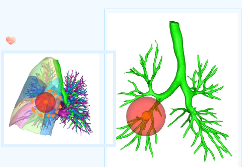 據王武平主任介紹,胸外科團隊目前已常規(guī)開展不同部位肺小結節(jié)的聯合肺亞段切除術,為肺小結節(jié)患者提供個體化的治療。術前進行三維重建,以磨玻璃結節(jié)為中心,勾勒出病灶周圍2cm切緣球,規(guī)劃切除范圍和路徑,保證足夠切緣,實現肺結節(jié)的精準切除和患者快速康復,該技術既能實現肺結節(jié)的切除治愈,又能最大程度保留患者的肺功能,是目前針對早期肺磨玻璃結節(jié)肺癌較先進的外科診療技術。