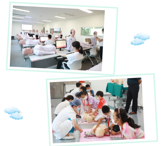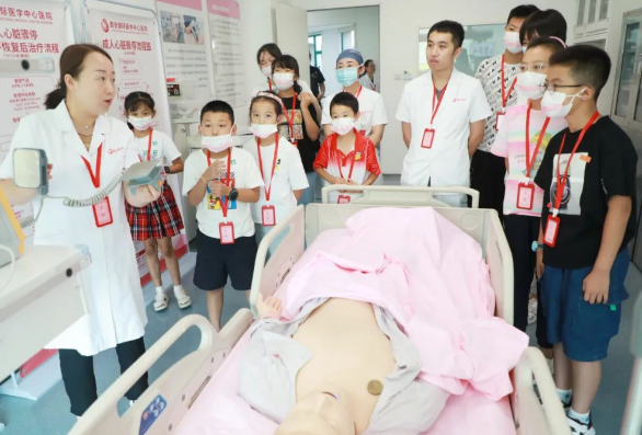 在培訓(xùn)中心,醫(yī)護(hù)人員為小朋友們講解急救知識、心肺檢查及手術(shù)科普知識?!叭绻瑢W(xué)摔傷、暈倒、停止呼吸怎么辦呢?”醫(yī)生示范,教會(huì)大家如何正確地現(xiàn)場救助。
