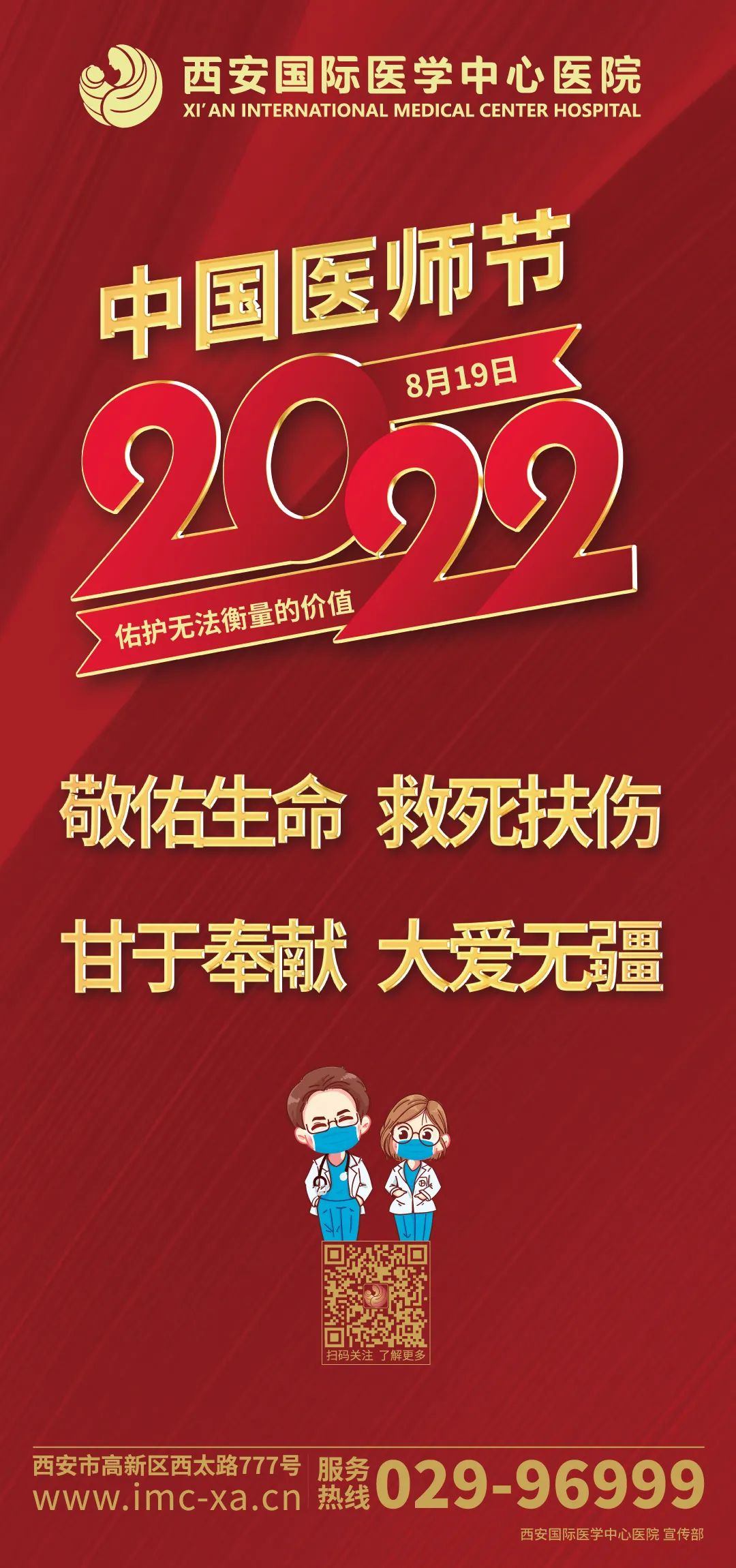 健康所系,性命相托。西安國(guó)際醫(yī)學(xué)中心醫(yī)院全體醫(yī)師堅(jiān)持人民至上、生命至上,以全方位、全周期保障人民健康為己任,用實(shí)際行動(dòng)踐行 “敬佑生命、救死扶傷、甘于奉獻(xiàn)、大愛(ài)無(wú)疆”的崇高精神,為建設(shè)健康中國(guó)、增進(jìn)人民健康福祉作出新貢獻(xiàn)。