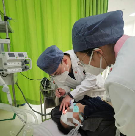 時間回溯到11月1日,曾在西安國際醫(yī)學中心醫(yī)院眼科接受過結(jié)膜囊狹窄口唇粘膜移植術(shù)的患者胡先生(化名),獨自從榆林前往西安復診。早8點還未到上班時間,患者已坐在候診區(qū)。“患者看起來不對勁?!毖劭品衷\臺護士田春思忖著,向患者走去,“撲通”一聲,胡先生的手機從手中滑落,人也喪失意識。田春一個箭步,沖到患者面前,眼科王在忠副主任醫(yī)師也循聲趕到,摸了患者的頸動脈:“沒脈搏了!快,實施心肺復蘇!”田春和技師張晶輪流為患者實施心肺復蘇,技師郝希遠則撥打了急救中心和眼科病區(qū)的電話請求支援。不到三分鐘,眼科主任倪偉和病區(qū)醫(yī)護人員趕到現(xiàn)場并調(diào)出患者之前就診時留的電話,通知患者家屬。