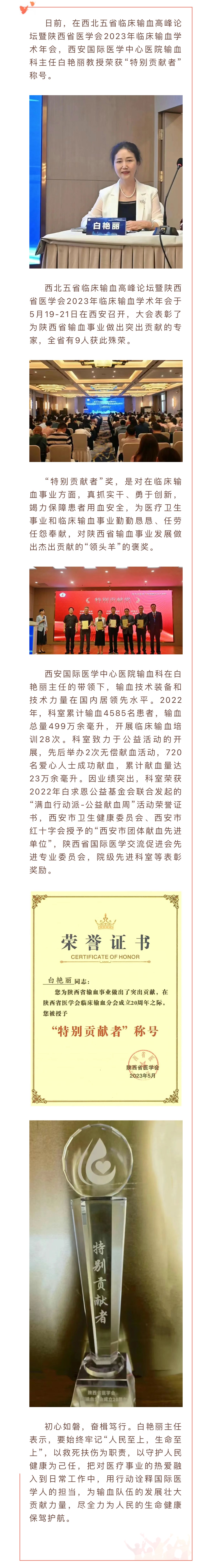 白艷麗獲陜西省醫(yī)學(xué)會(huì)“特別貢獻(xiàn)者”稱號(hào)