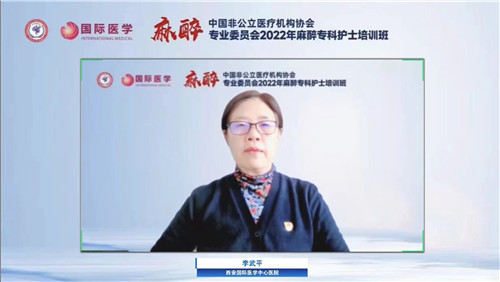 全國非公立醫(yī)療機構(gòu)協(xié)會護理分會副會長、西安國際醫(yī)學(xué)中心醫(yī)院副院長李武平主持麻醉??谱o士線上培訓(xùn)。清華大學(xué)長庚醫(yī)院涂淑敏、北京大學(xué)國際醫(yī)院趙欣、北京大學(xué)人民醫(yī)院何苗、徐州醫(yī)科大學(xué)護理學(xué)院周芳教授、西京醫(yī)院麻醉科黃朝旭護士長分別授課,解析麻醉護理工作重點、為麻醉護理人才建設(shè)提供建議。