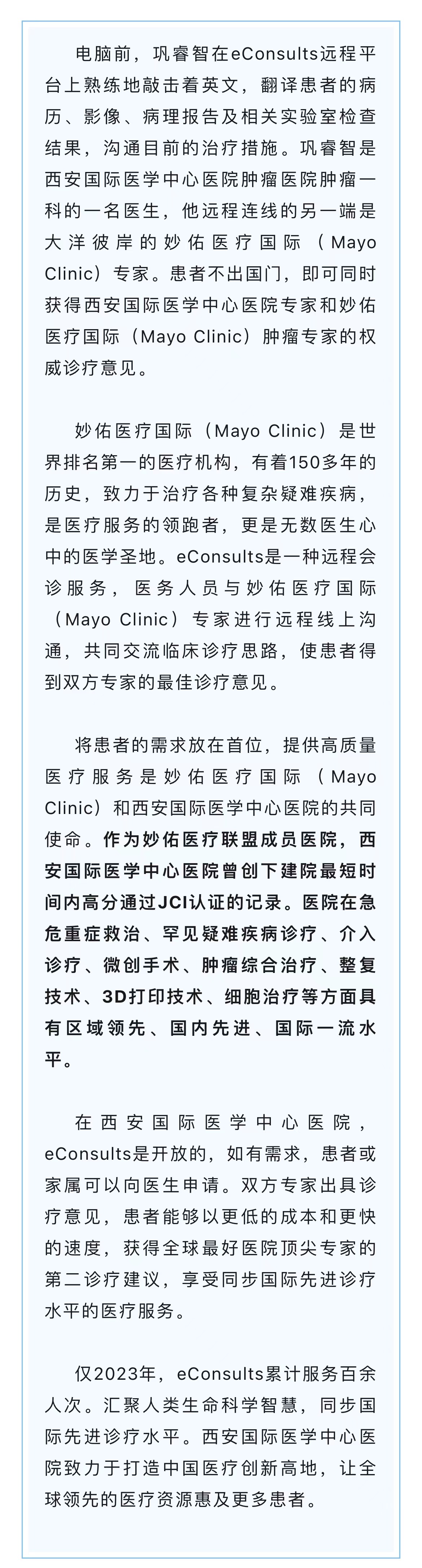 觸手可及!在西安國際醫(yī)學(xué)中心醫(yī)院,eConsults讓你不出國門,同步國際先進(jìn)診療服務(wù)