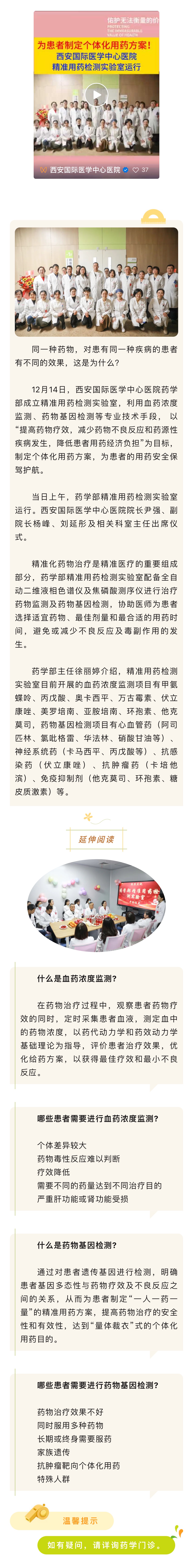 為患者制定個(gè)體化用藥方案!西安國(guó)際醫(yī)學(xué)中心醫(yī)院精準(zhǔn)用藥檢測(cè)實(shí)驗(yàn)室運(yùn)行