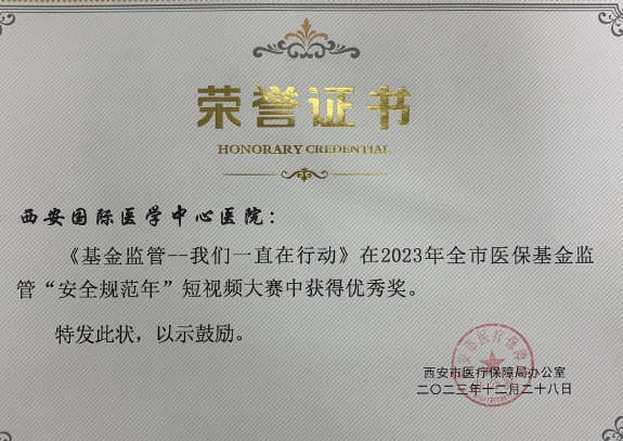 近日,西安市醫(yī)療保障局公布2023年全市醫(yī)?;鸨O(jiān)管“安全規(guī)范年”短視頻大賽評選結(jié)果,我院宣傳短視頻《基金監(jiān)管——我們一直在行動》榮獲優(yōu)秀獎。